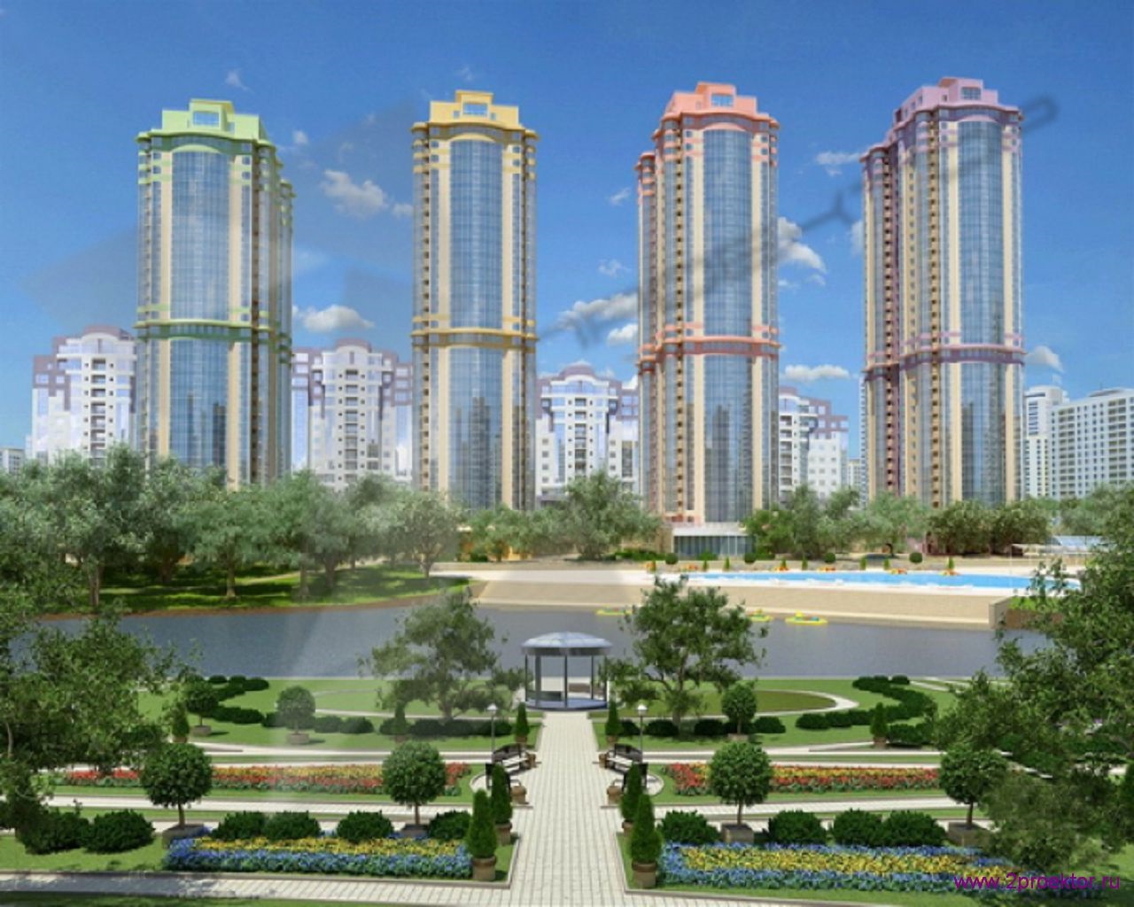 - Лаконичный дизайн многоэтажек в неоклассическом стиле (для облицовки фасадов использовались качественные австрийские профили, а стиль входных зон разрабатывало известное дизайнерское бюро).